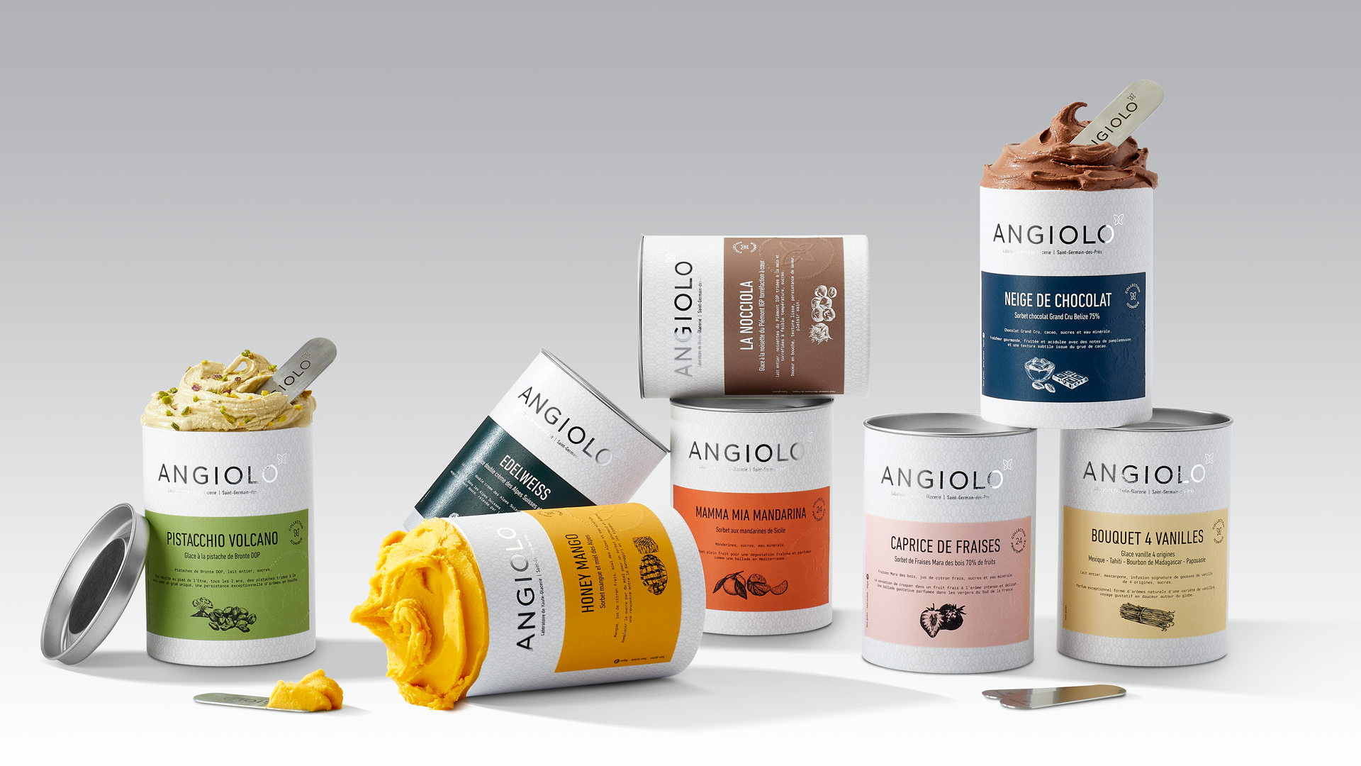 Pour une fête en famille ou entre amis, une soirée professionnelle conviviale ou simplement pour faire ou se faire plaisir, les coffrets de glaces et sorbets du Laboratoire de Haute Glacerie ANGIOLO vous permettent de créer un assortiment gourmand qui surprendra et ravira vos invités.